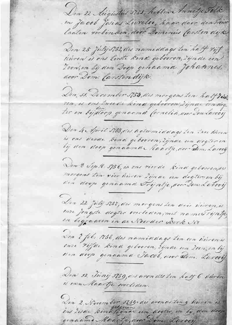 Het gereformeerde echtpaar Jacob Josias Lieveloo (1726-1778) en Annetje Tolk (1729-1792) hadden tien kinderen.